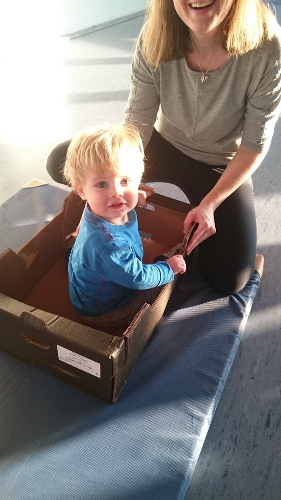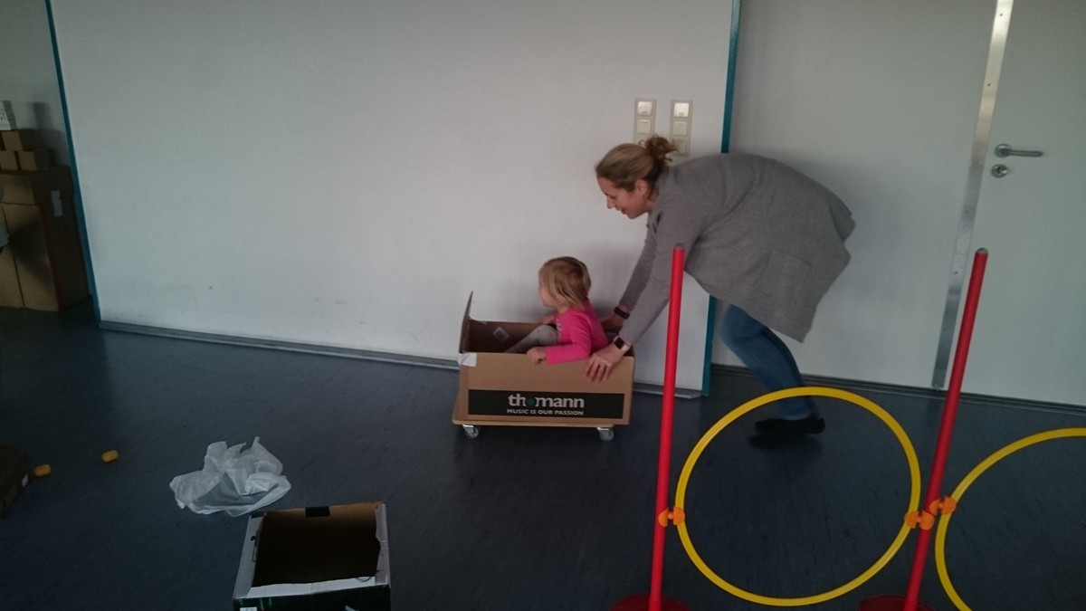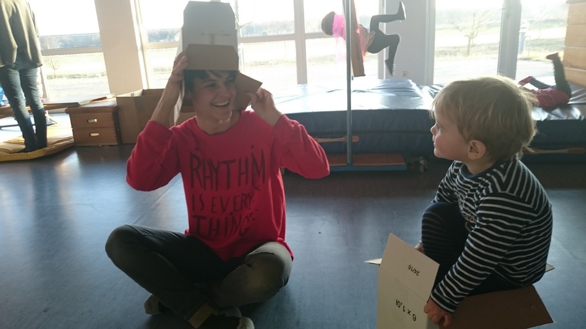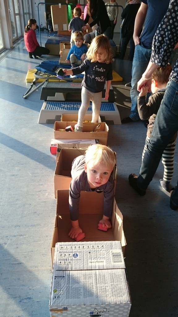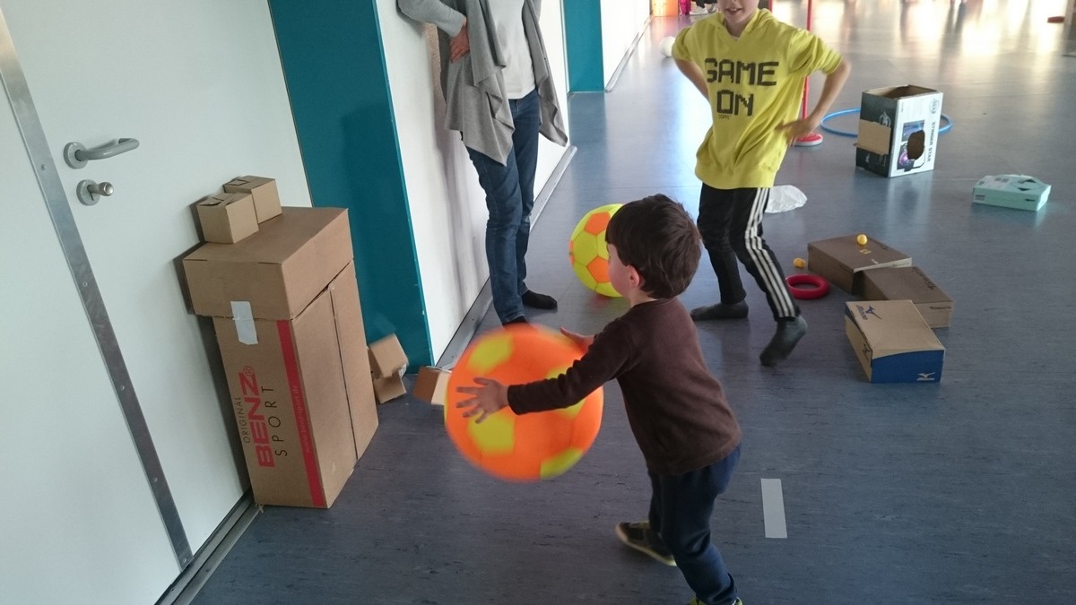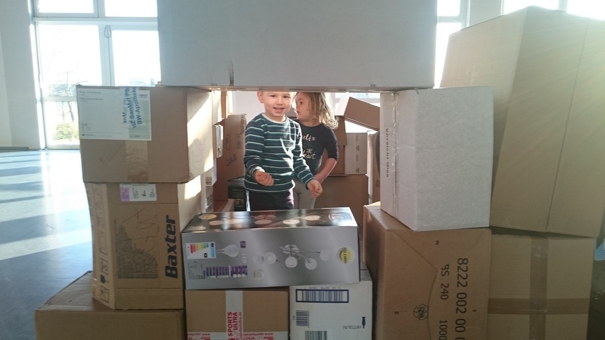 Kinder mit Kartons